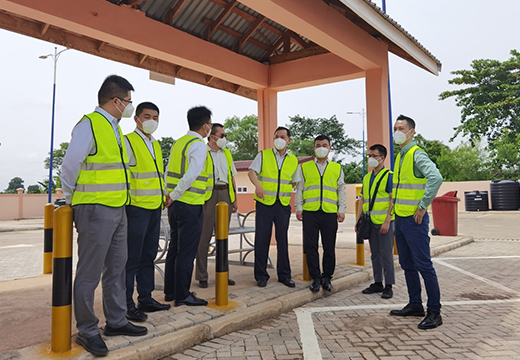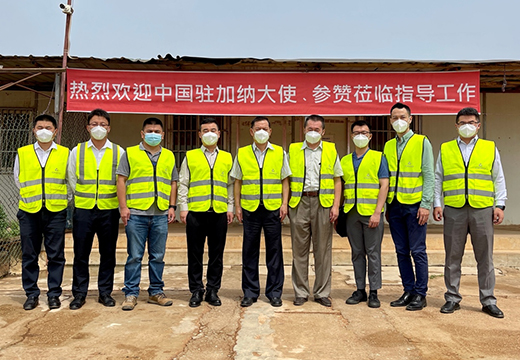 3月26日,中国驻加纳大使卢坤、商务参赞李耀宏一行,到我公司库马西城市道路桥梁排污渠项目调研指导工作,并向坚守一线的中方员工表示亲切问候。