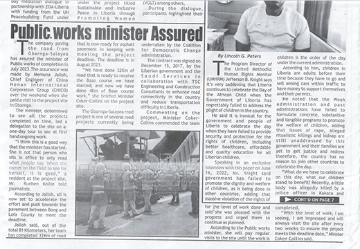 利比里亚当地New Dawn报纸对邦加—萨拉耶81公里道路项目施工情况进行了相关报道。